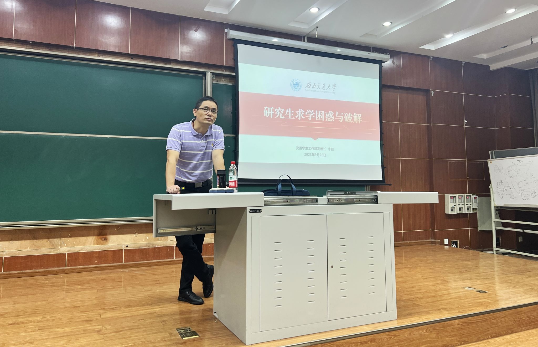 9月26日晚19:30,九里校区J4104,党委学生工作部李毅副部长受邀与威尼斯娱人中国2023级研究生学子交流交大人的研究生之旅。
