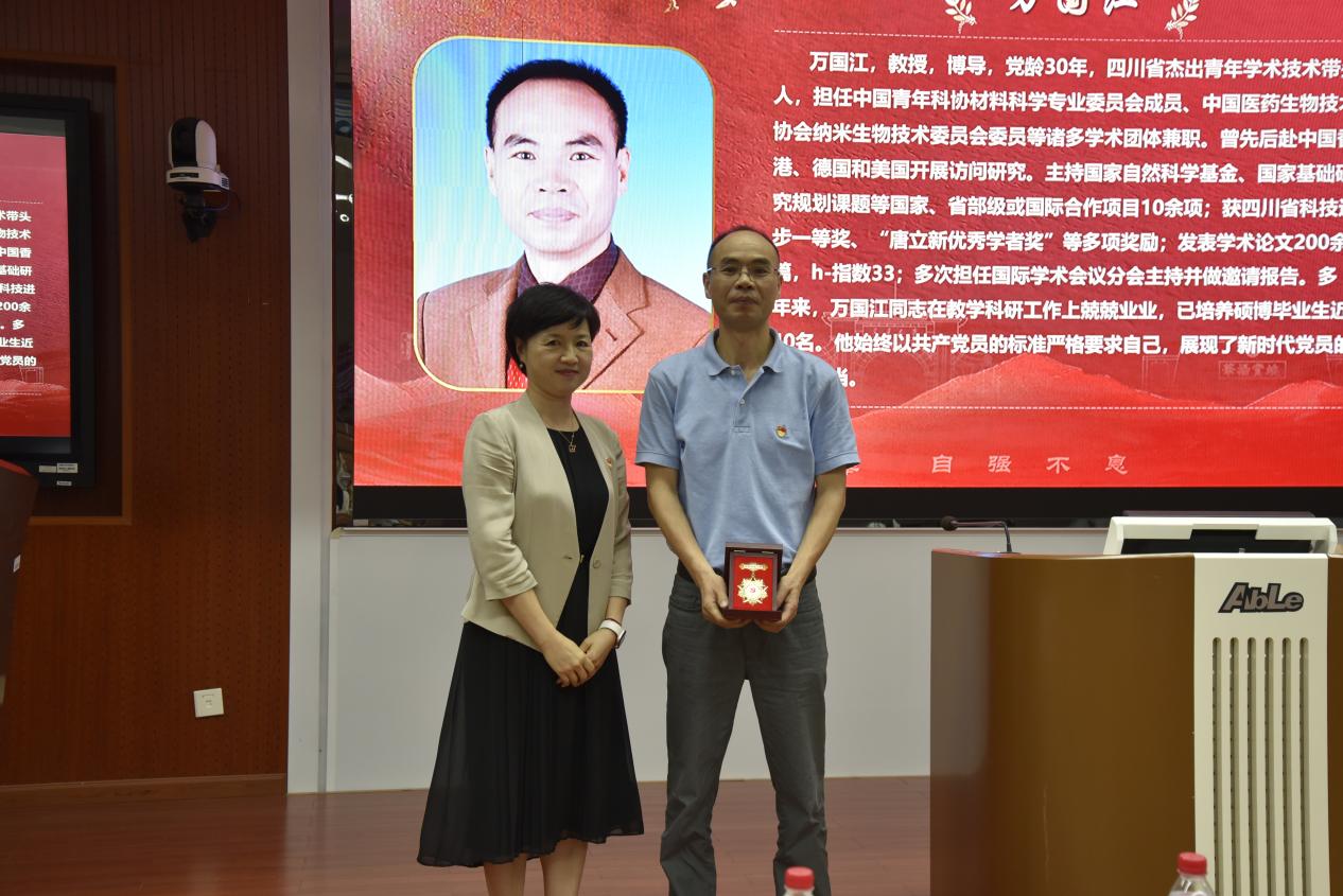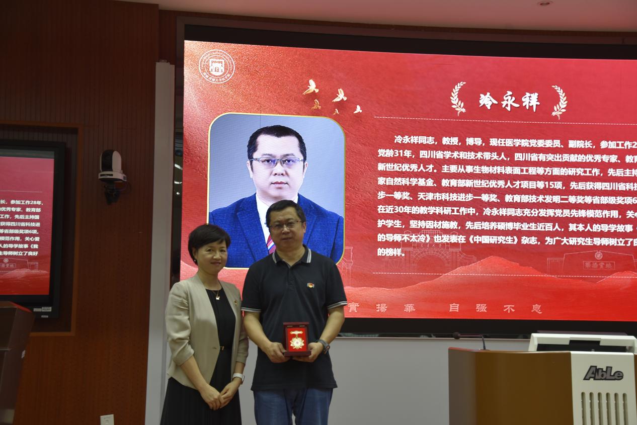 值此迎接中国共产党成立104周年之际,威尼斯娱人中国党委特为党龄30年以上的冷永祥、万国江两位同志定制了“光荣在党30年”纪念章,以表达对两位同志在学校、学院发展以及党和国家教育、科研事业中所作贡献的衷心感谢和崇高敬意。党委书记曾东红为两位同志颁发了纪念章。