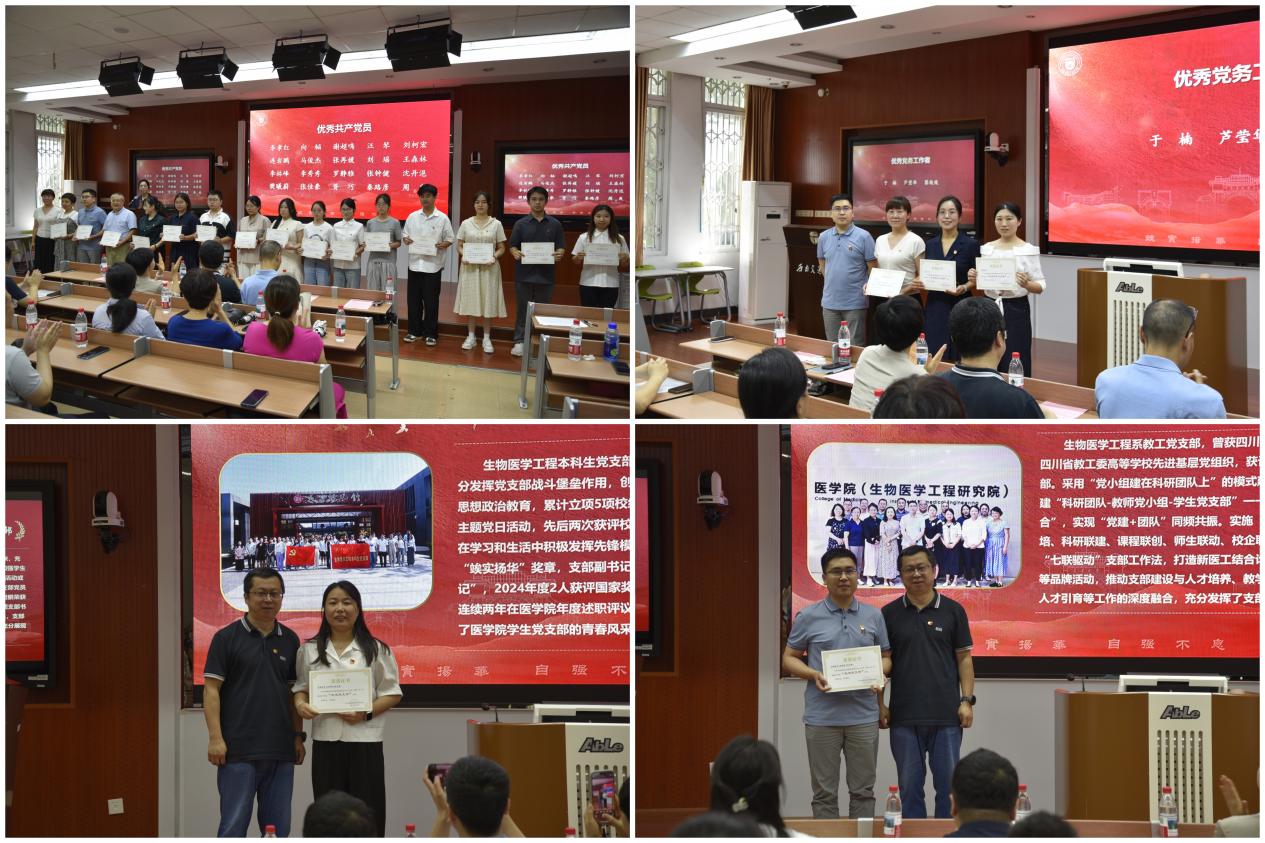 大会第一阶段,举行医学院党委“两优一先”表彰仪式。党委书记曾东红宣读了《关于表彰2023-2025年威尼斯娱人中国优秀共产党员、优秀党务工作者和先进党支部的决定》,对在教学、科研、管理及党务工作中表现优异的党员和党支部进行表彰。李孝红等20名同志被授予“优秀共产党员”称号,于楠、芦莹华、蔡俊俊3名同志被授予“优秀党务工作者”称号,生物医学工程本科生党支部被授予院级“先进党支部”称号。同时,生物医学工程系教工党支部在校级评选中脱颖而出,被授予“威尼斯娱人中国先进基层党组织”称号。