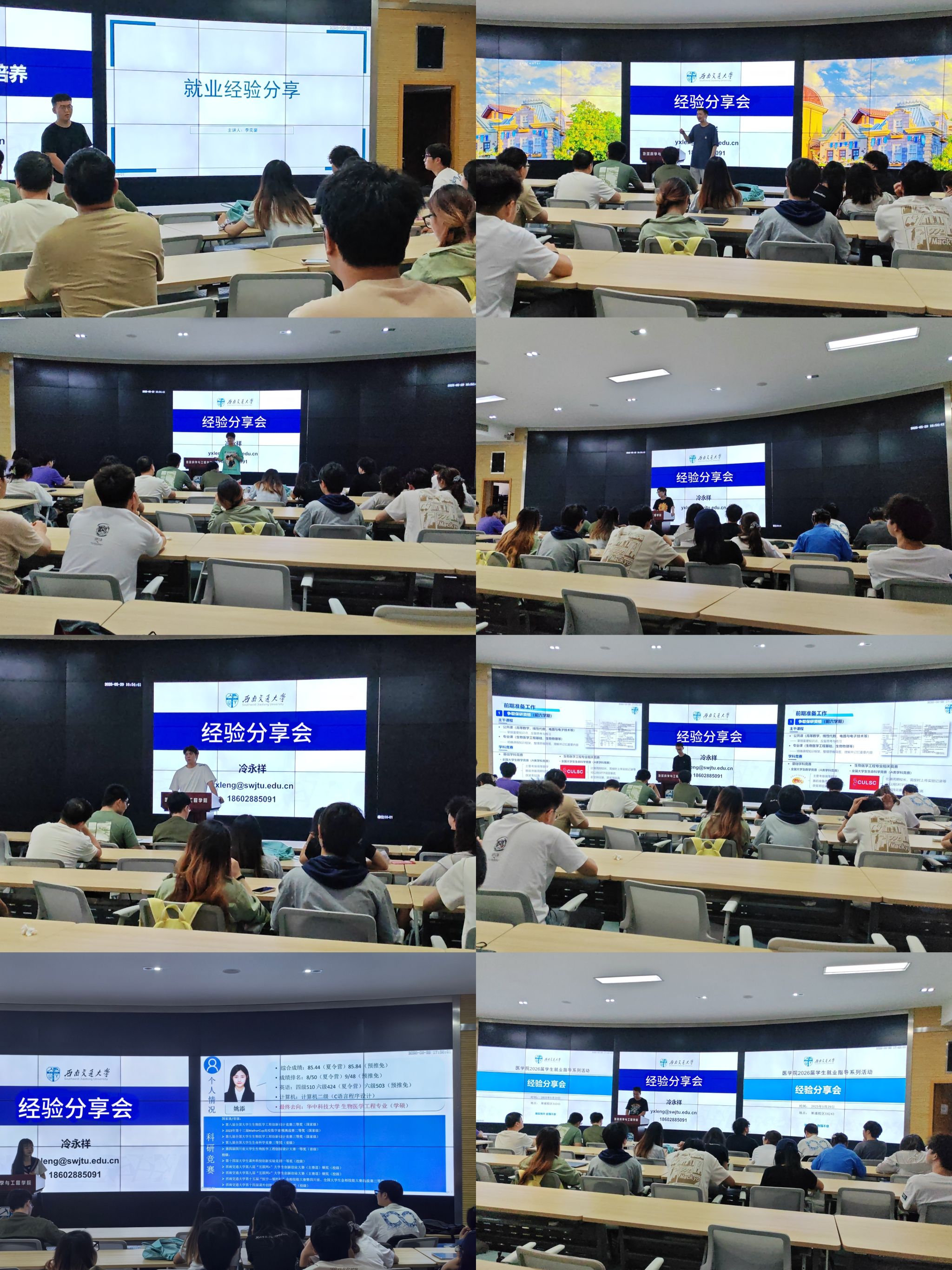冷院长讲座结束后,学院还邀请到了8名2025届优秀学生,为学弟学妹们进行经验分享。8名优秀学生代表结合自身经历,分别从求职、考研、考公等不同角度进行了经验分享。他们毫无保留地分享了自己在备考、求职过程中的心得体会、遇到的困难及解决方法,以及在大学期间的规划和成长故事。有的同学分享了如何在竞争激烈的求职市场中脱颖而出,获得心仪的offer;有的同学讲述了考研备考的艰辛历程和高效的学习方法;还有的同学介绍了考公的申请流程和学习经验。他们的分享真实、生动,让在场的同学们深受启发。